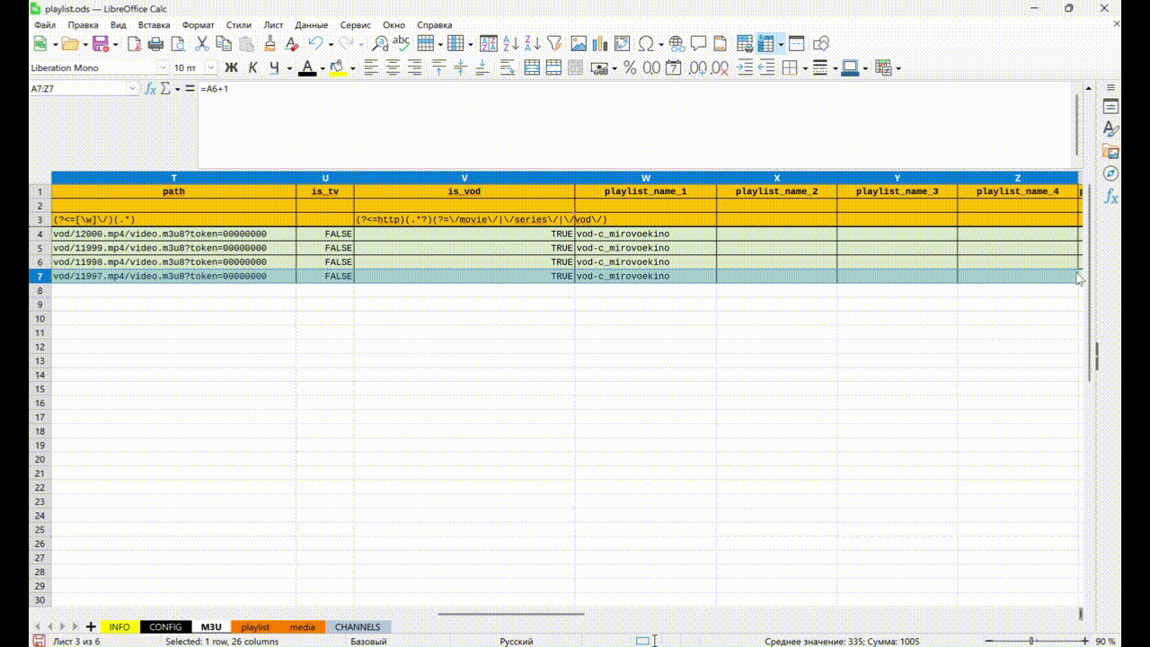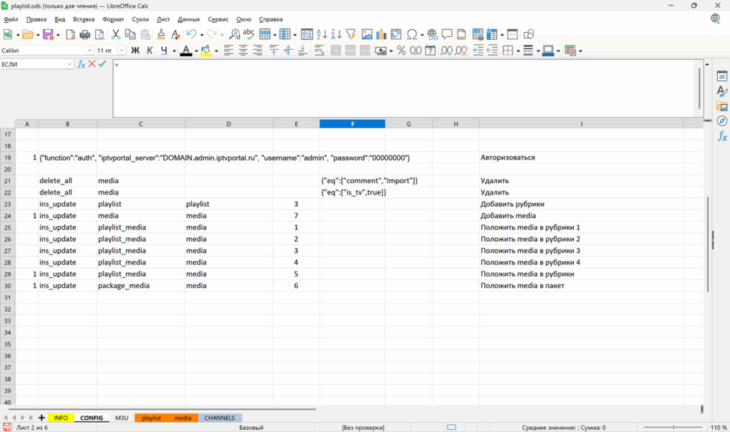 playlist.ods — таблица, из которой происходит импорт данных в IPTVPORTAL