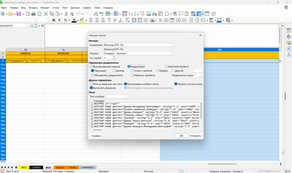 Инструкция по импорту плейлиста через LibreOffice + Python