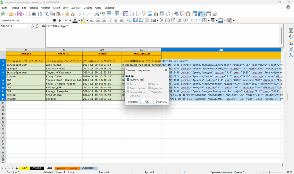 6. На листе «M3U» и стереть всё содержимое из столбца AO