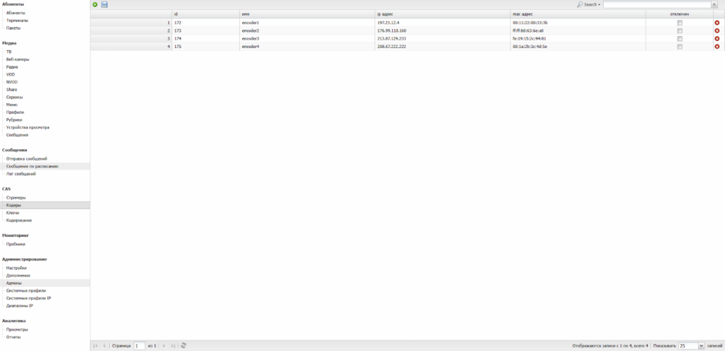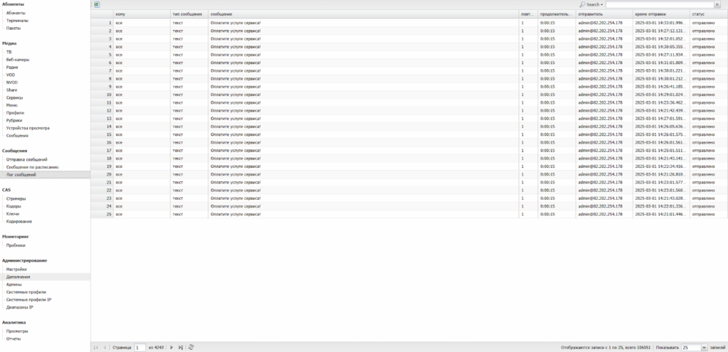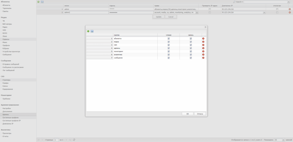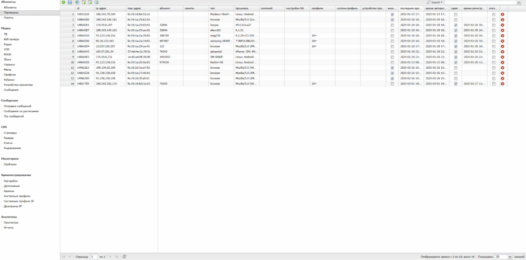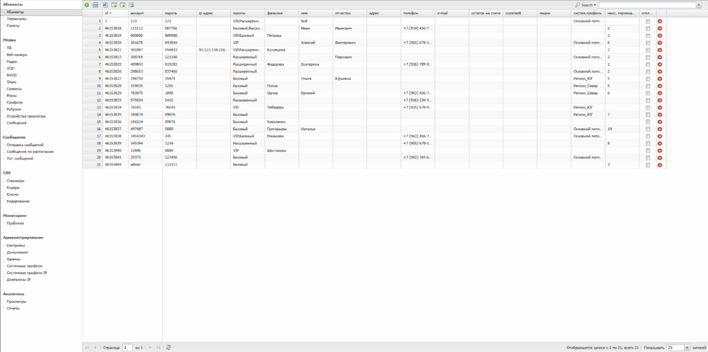 Оператору предоставляется возможность управления всеми учетными записями пользователей IPTV-сети.