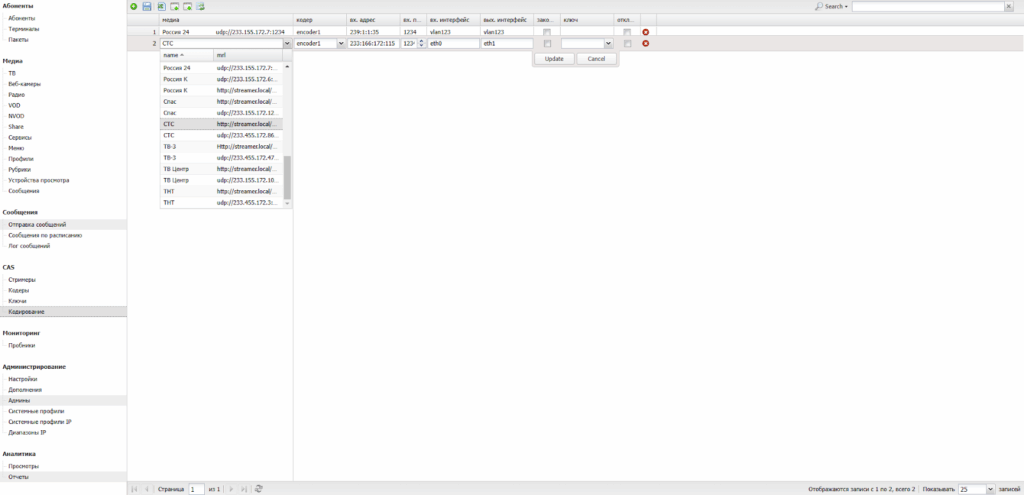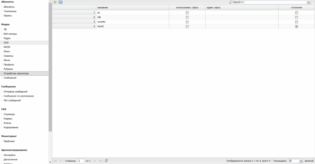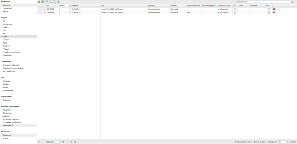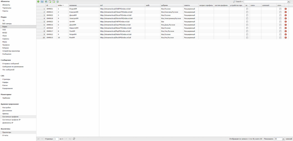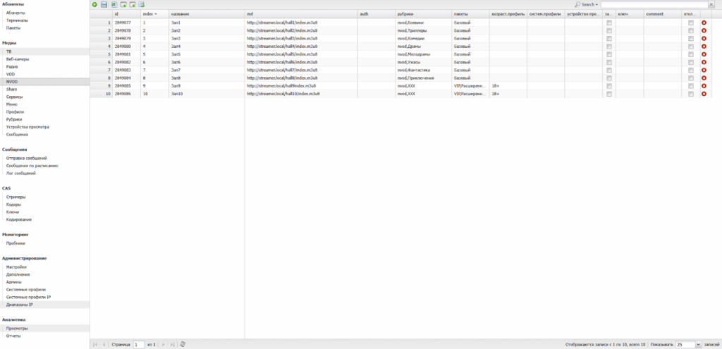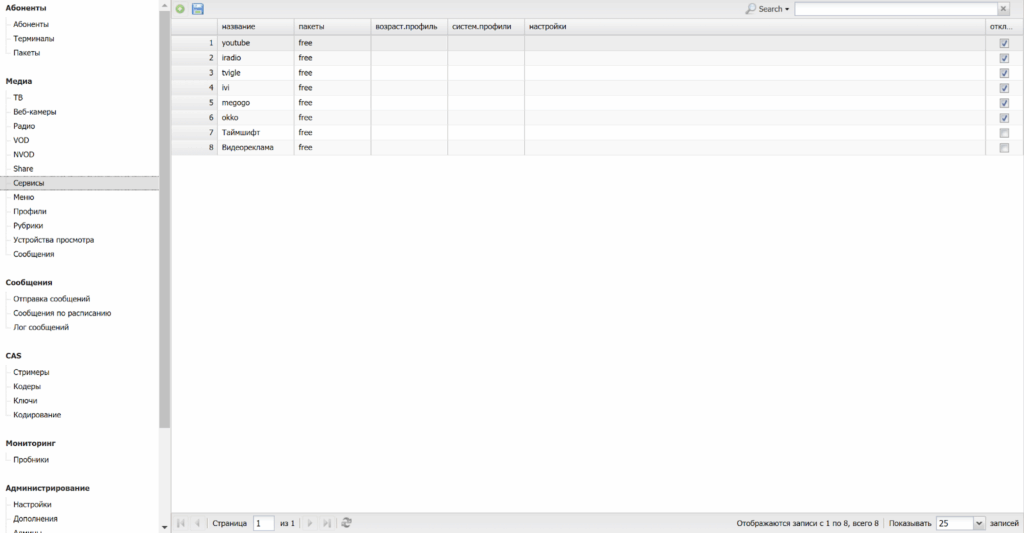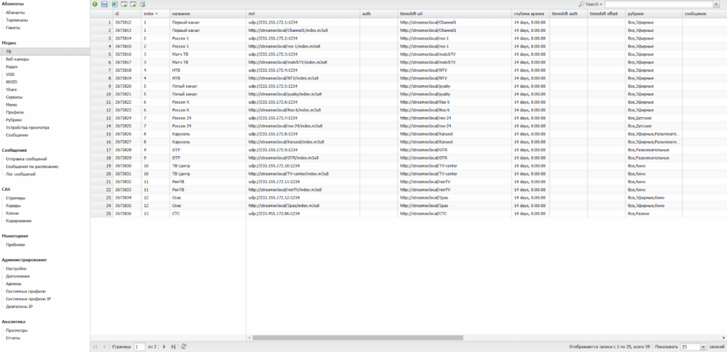Данный раздел обеспечивает управление IPTV-сервисом.