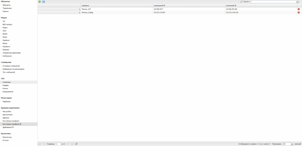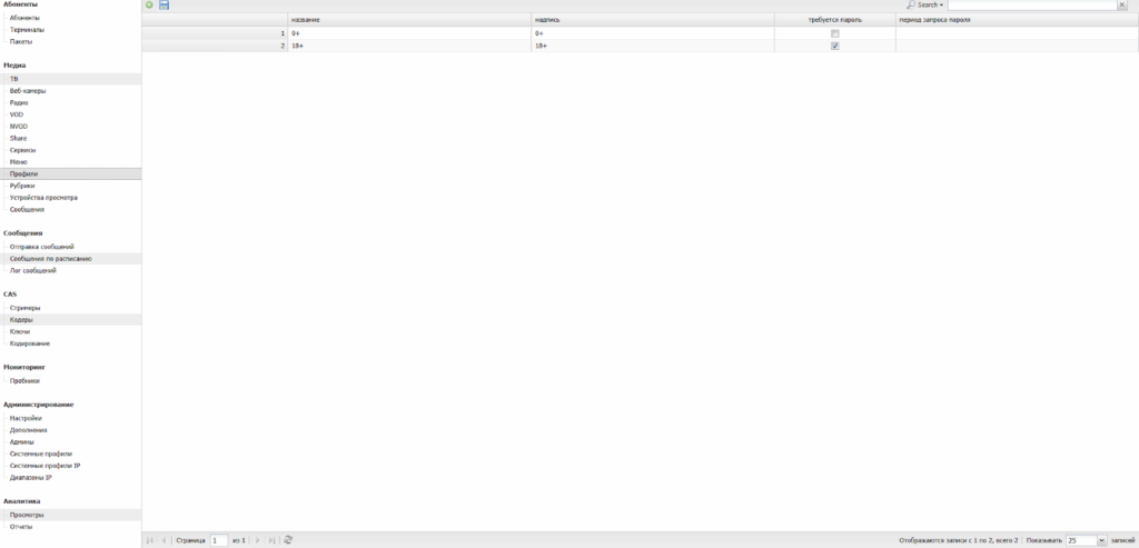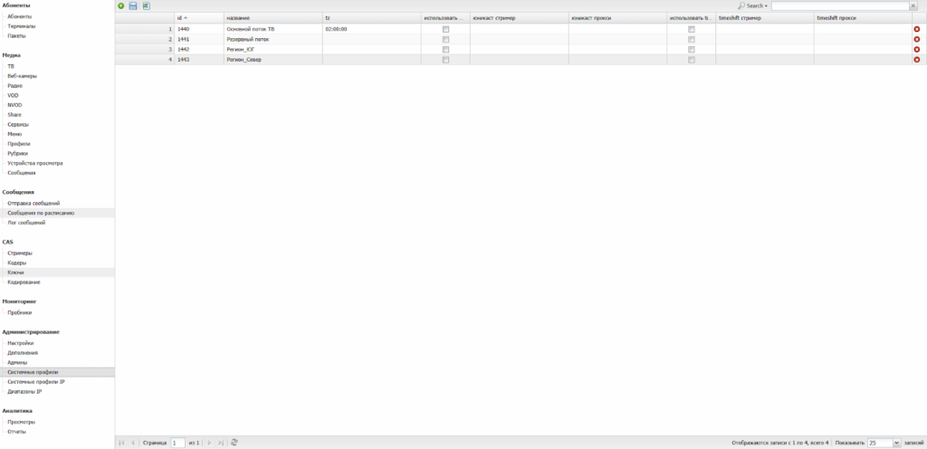 | Использовать системные профили | Если ВКЛ, то для распределения доступа к медиаресурсам будут использоваться системные профили. Медиаресурсы будут доступны Абонентам/Терминалам только в рамках общего для них системного профиля. |