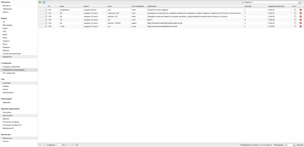 Данный раздел содержит в себе инструменты для управления отображением контента, предоставляемого абонентам.