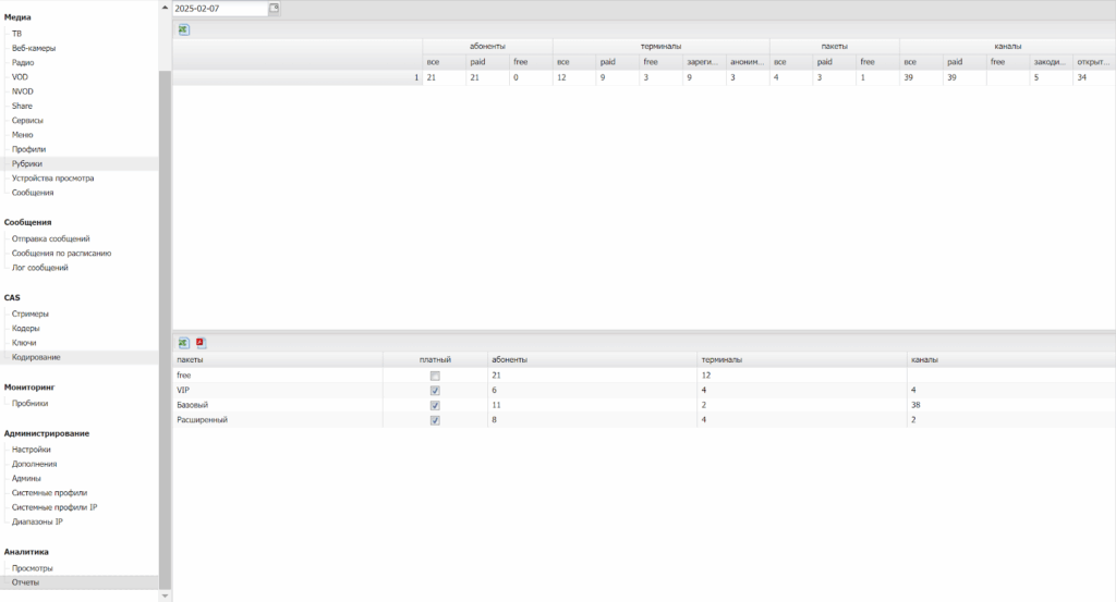 Данный раздел предназначен для контроля статистики просмотров каналов.